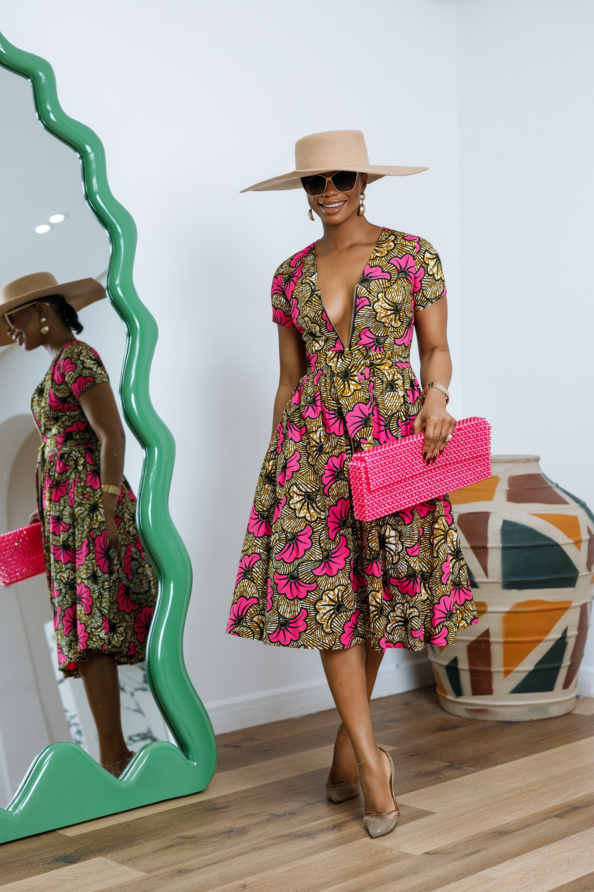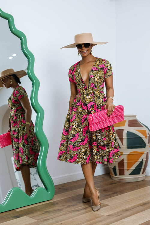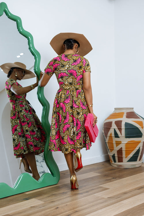 AYI AFRICAN PRINT ZIP MIDI DRESS [PINK]
