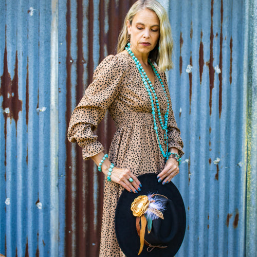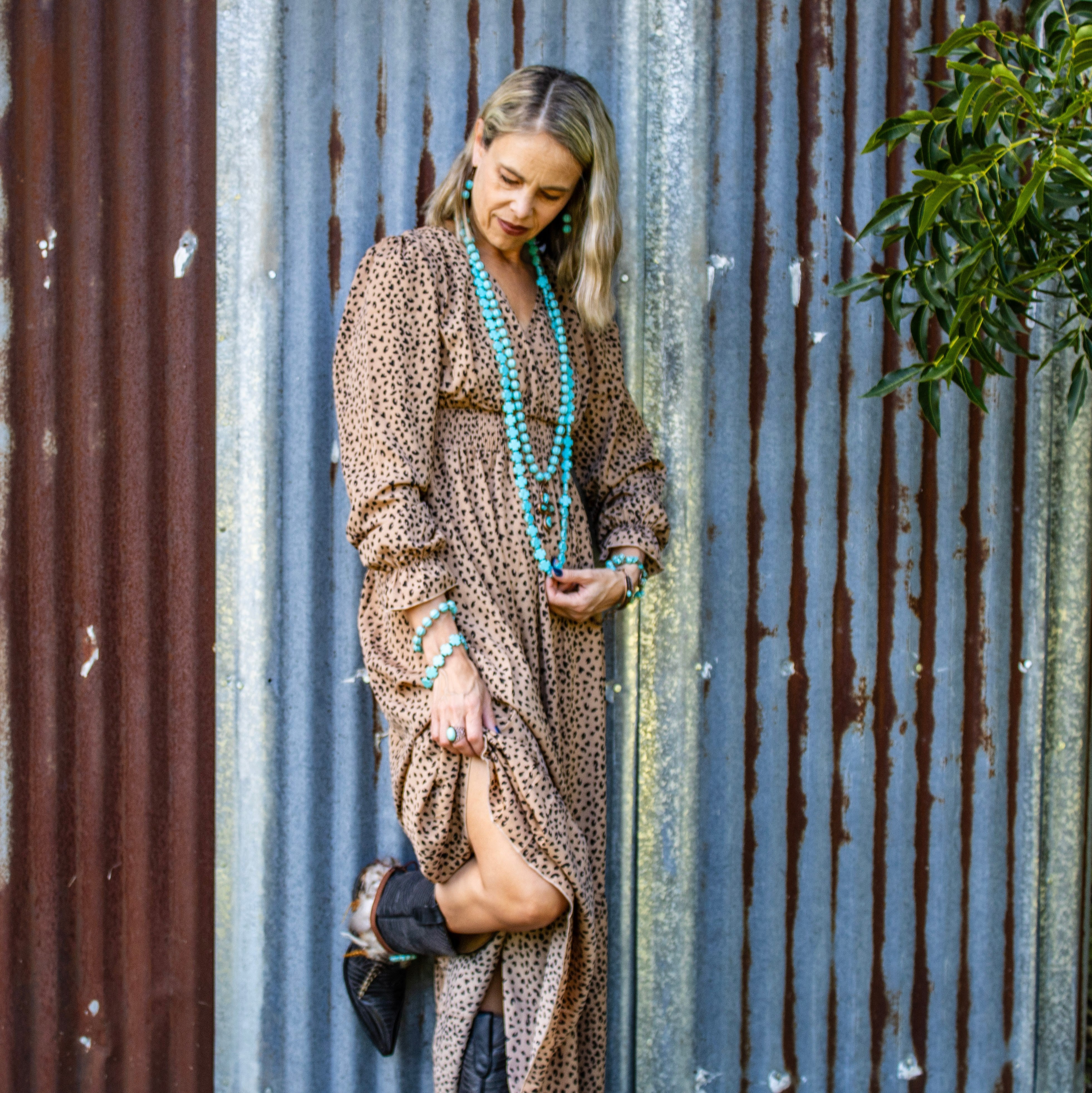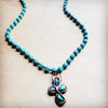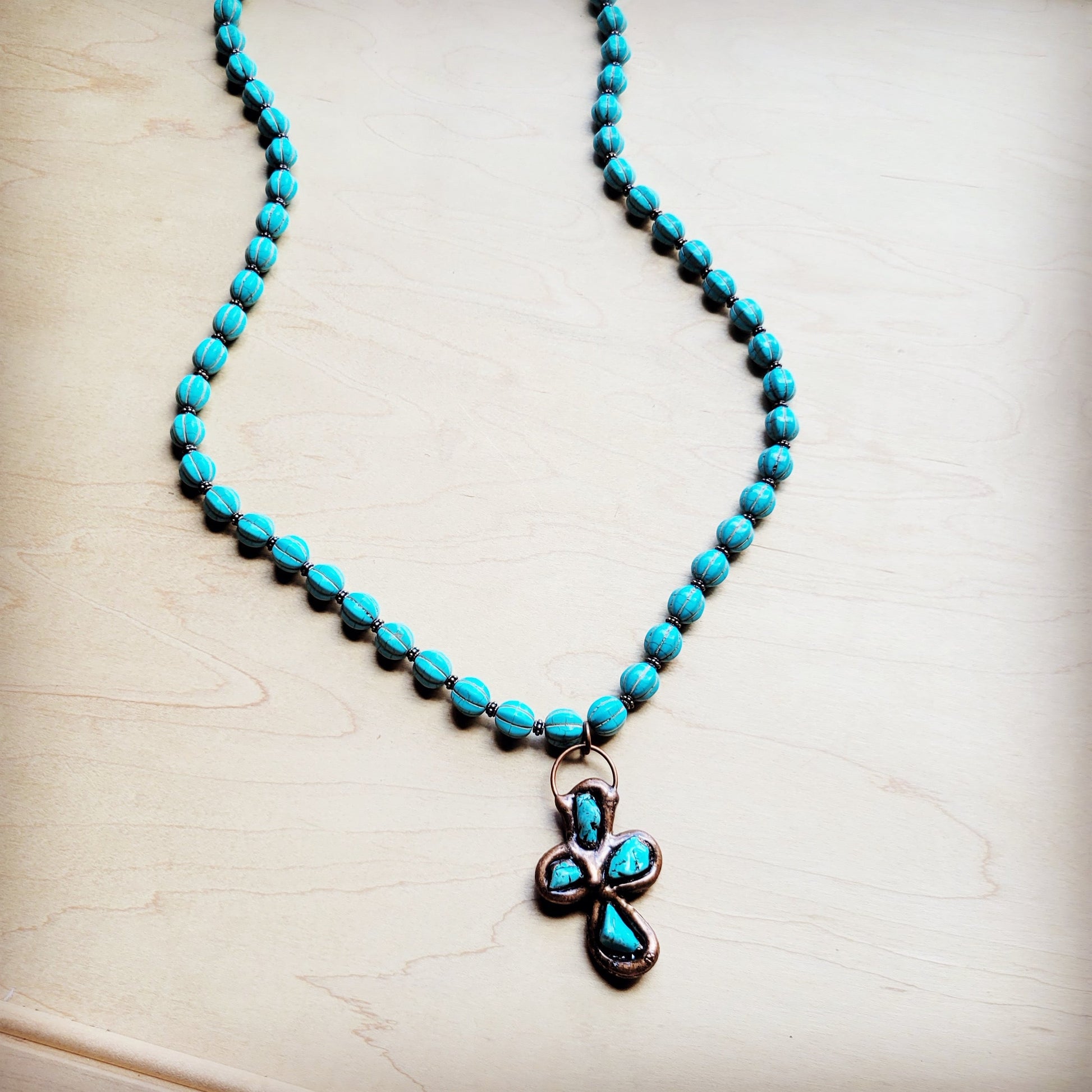 **Blue Turquoise Melon Beaded Necklace w/ Copper Cross 260g