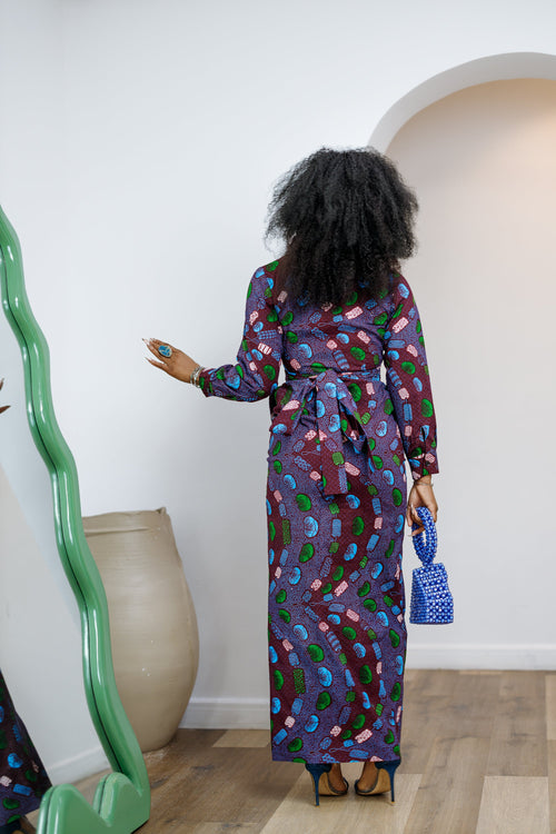 EMILY AFRICAN PRINT BUTTON MAXI DRESS [MULTICOLOR]