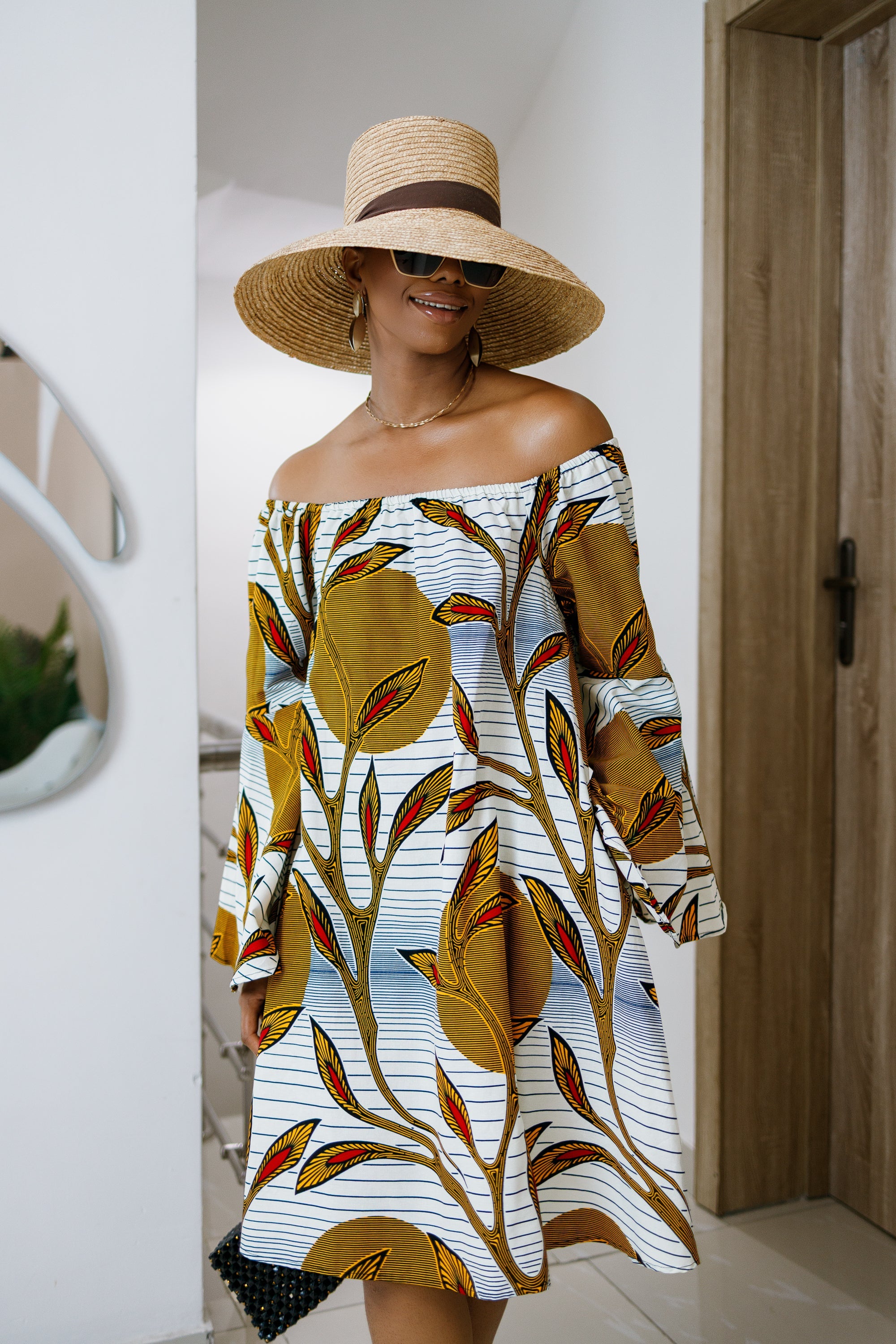 TIYE AFRICAN PRINT OFF SHOULDER DRESS